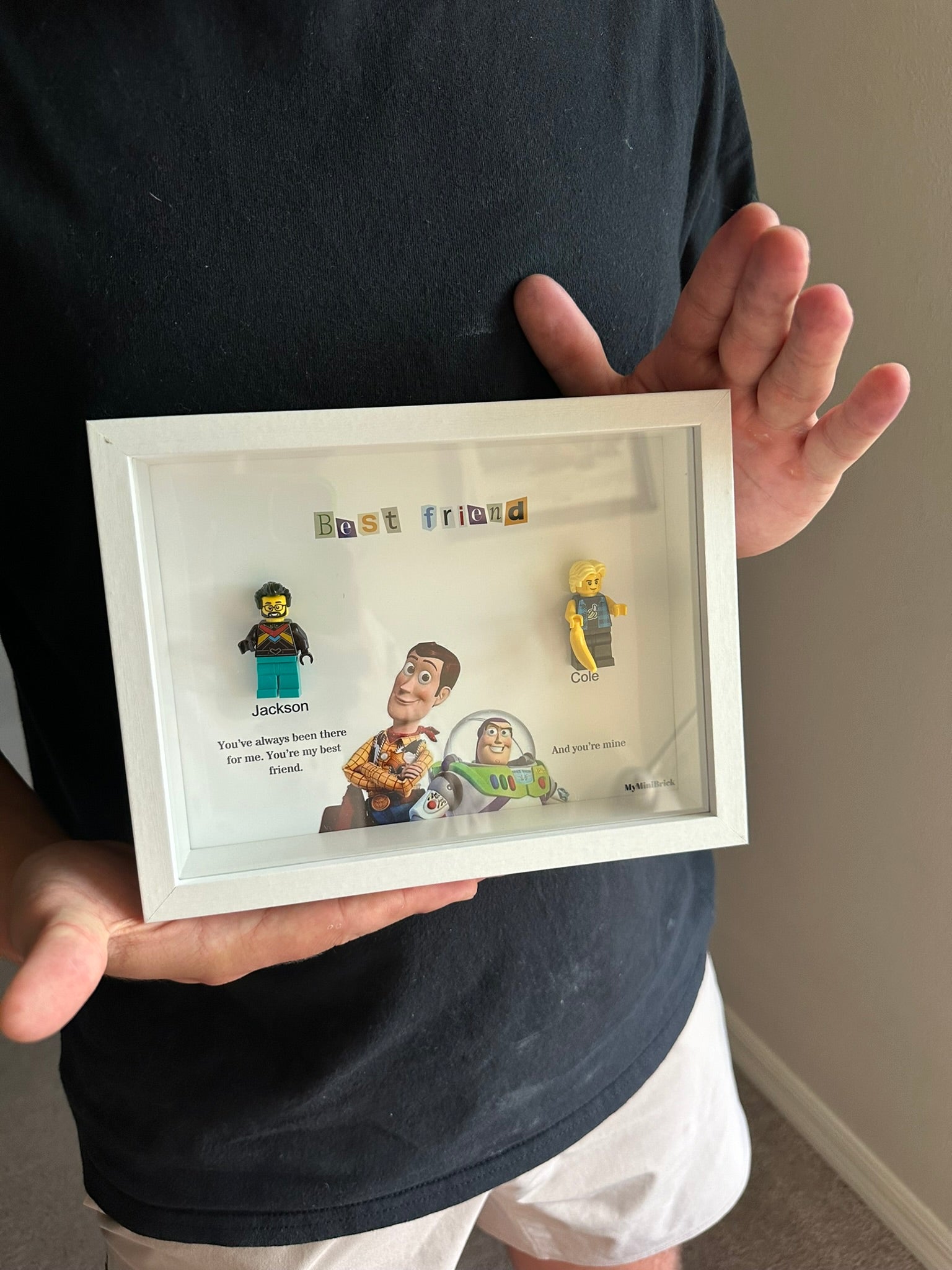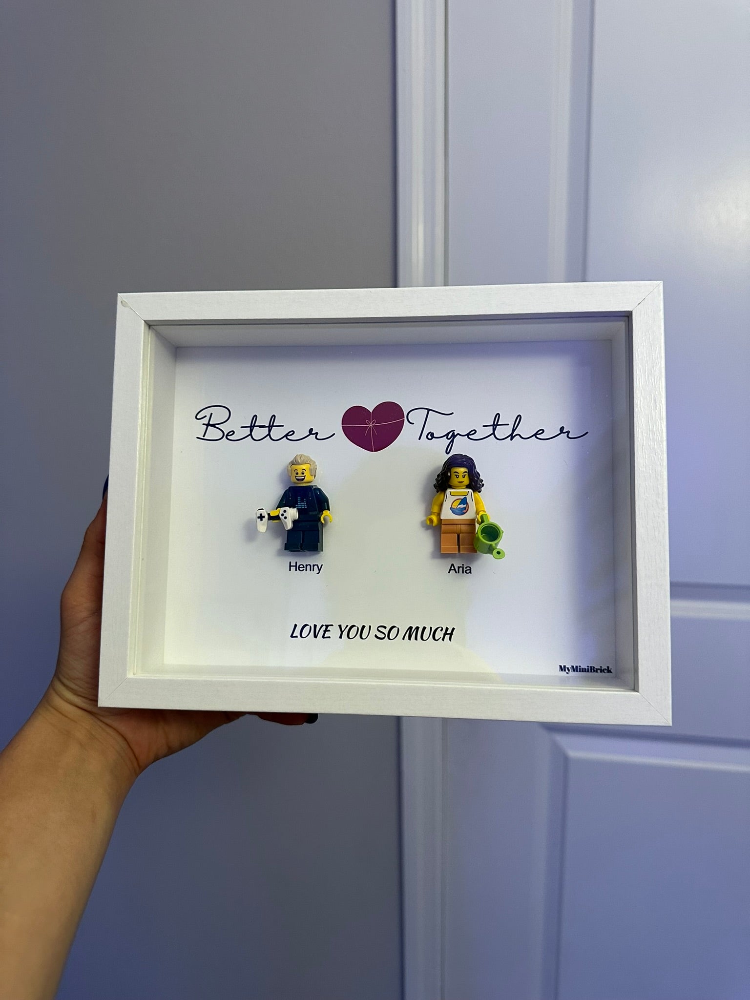 To personalize your mini figure, start by selecting the frame size, color, and the number of figures. Once you place your order, we'll begin customizing your MyMiniBrick frame right away.