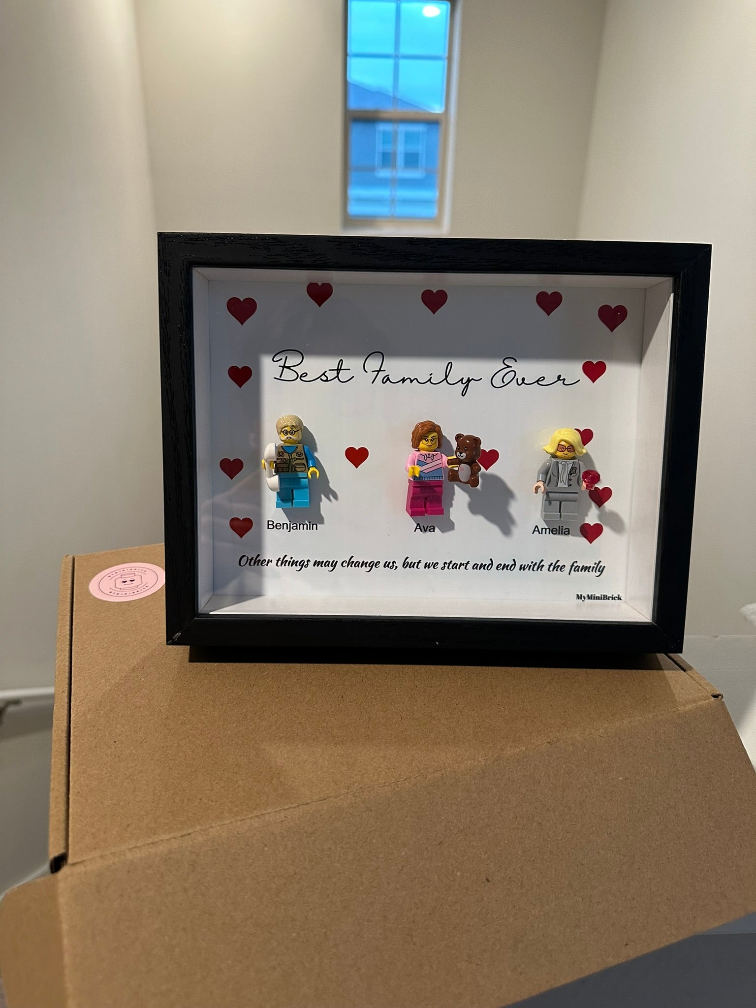 Yes, each mini figure is carefully crafted by hand. From the selection of the frame and background to the assembly of the Lego-style components, we ensure every detail is meticulously handled to create a high-quality, personalized product.
